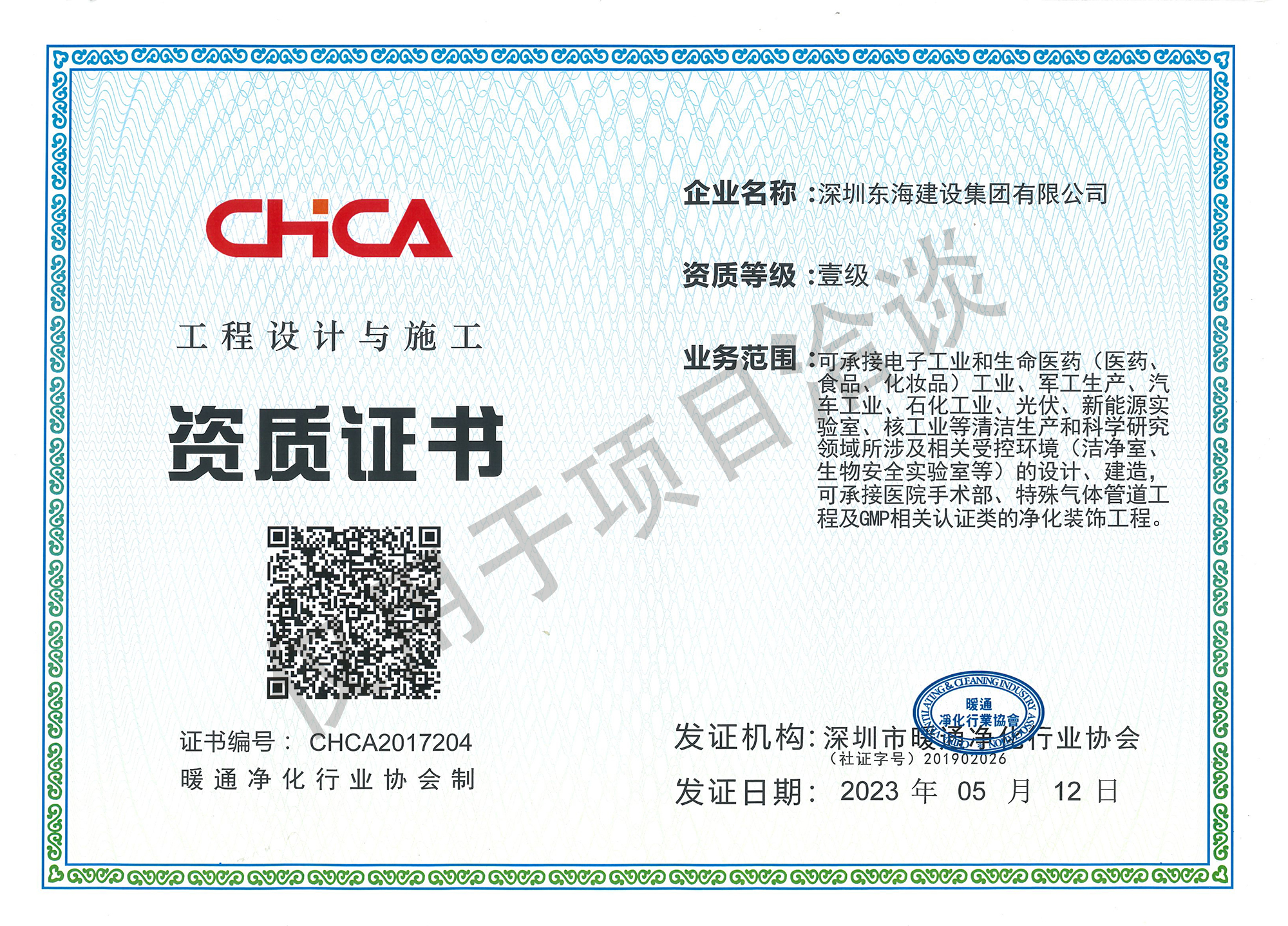 暖通凈化工程設(shè)計(jì)施工資質(zhì)證書